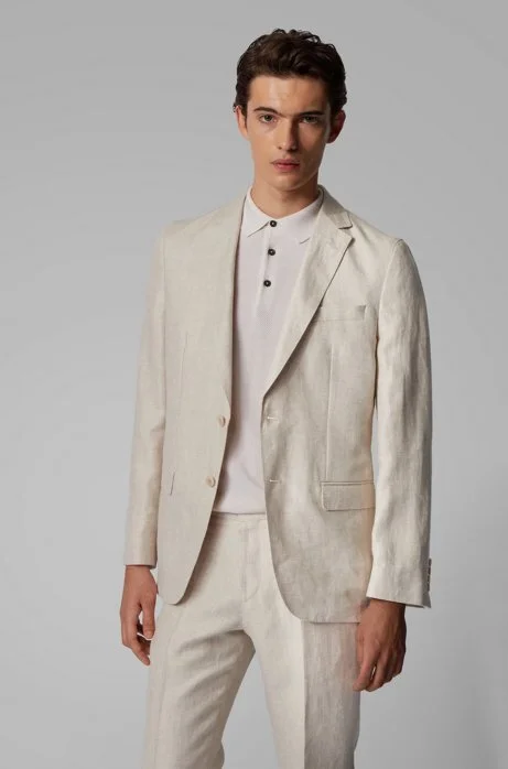 Ci-dessous : Baskets vegan en Piñatex et costume slim fit en lin italien, à la confection vegan d’Hugo Boss (© Hugo Boss)