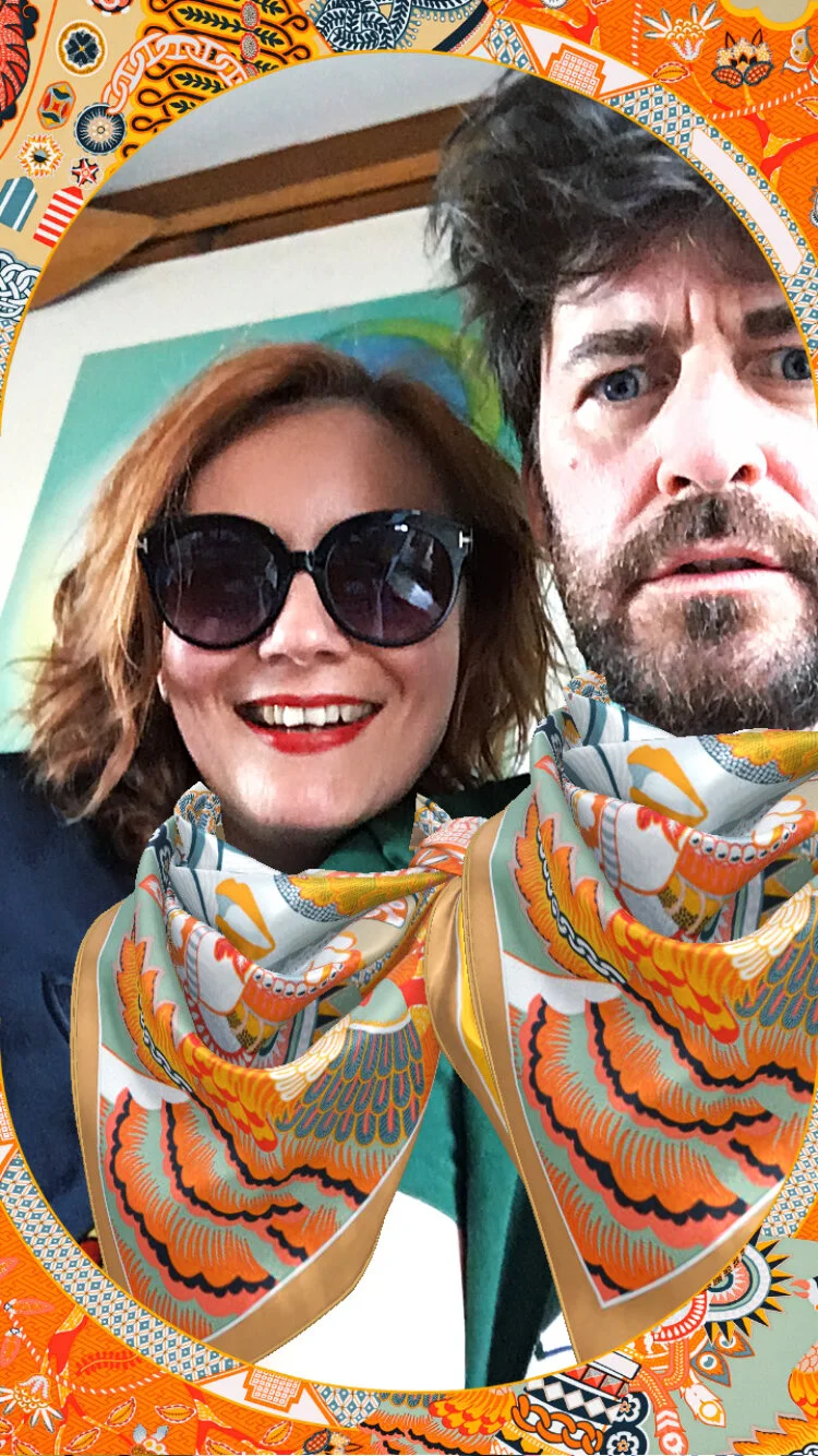 With its fun look taking up the visual codes of amusement park photobooths, at the center of this trend allowing virtual elements to be superimposed in real time on reality on social medias, not to mention its ease of use on your phone in a few clicks, this kind of augmented reality filters offers the possibility to come into contact with the storytelling of the brand, in this case the iconic silk scarf, in a square shape, from this more than centenary traditional house, without being intimidated. And the pictures confirm it: the exercise is, indeed, decomplexing.