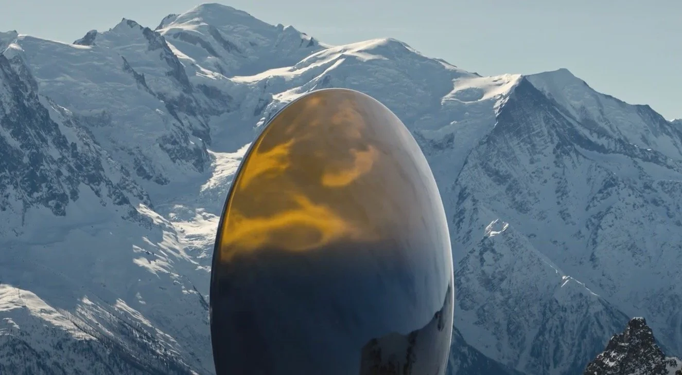 The French brand Vuarnet, known for its sunglasses and ski goggles, stages the curves of its mineral lenses, in the form of a mysterious UFO, floating in a grandiose landscape, like the ship of the engineers from the SF movie Prometheus by Ridley Scott, released in 2012.